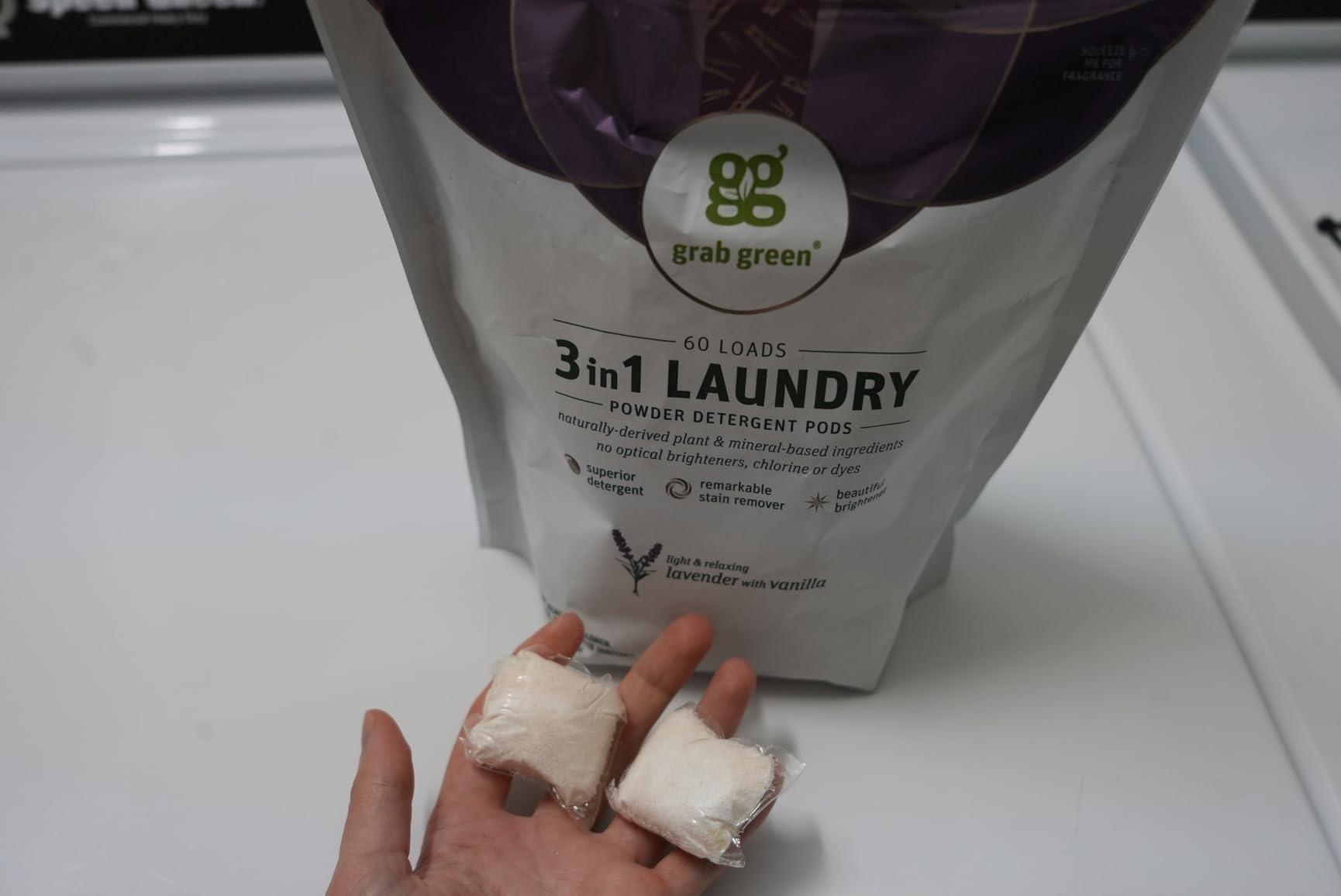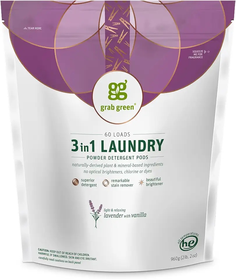 I switched to Grab Green 3-in-1 Laundry Detergent Pods (Lavender + Vanilla) a few months ago and I’m never going back. My clothes come out incredibly clean and fresh with a light, natural scent. The pods dissolve completely with no residue, and even tough kid stains disappear. My sensitive skin thanks me too – no more irritation!