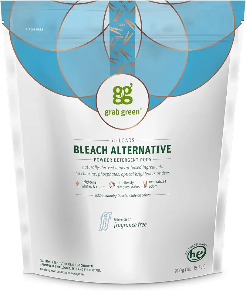 Boost your laundry results with these chlorine-free Bleach Alternative Pods. The 60-count fragrance-free formula uses plant and mineral-based ingredients to brighten whites, remove stubborn stains, and neutralize odors without harsh chemicals. Safe for all fabrics and colors, these pods are an excellent eco-friendly addition to your regular detergent for visibly cleaner and fresher clothes every wash.